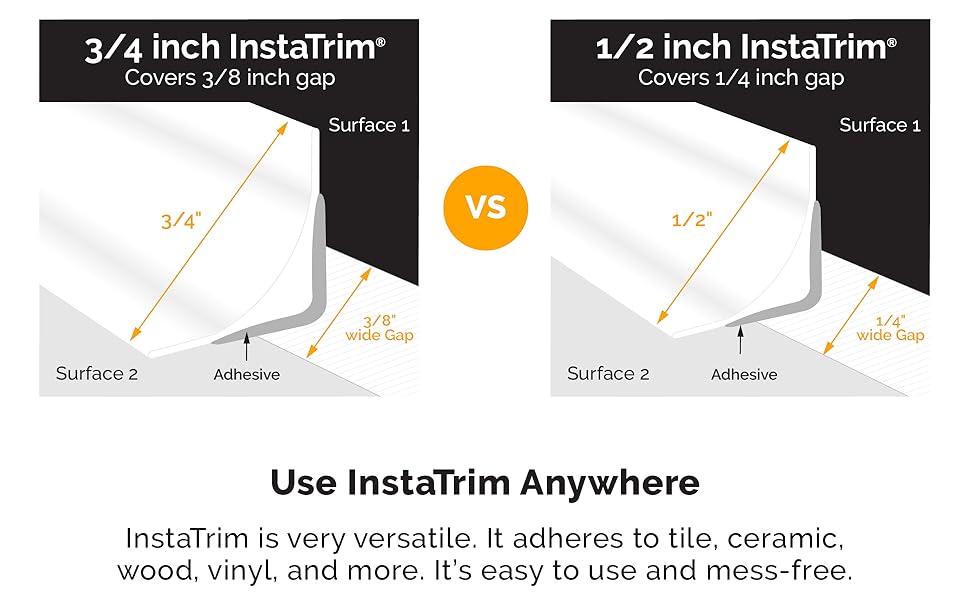 Amazon Com Instatrim 3 4 Inch Covers 3 8 Gap Flexible Self Adhesive Caulk And Trim Strips For Floors Ceilings Countertops And More White 10ft Long 1 Pack Home Improvement
