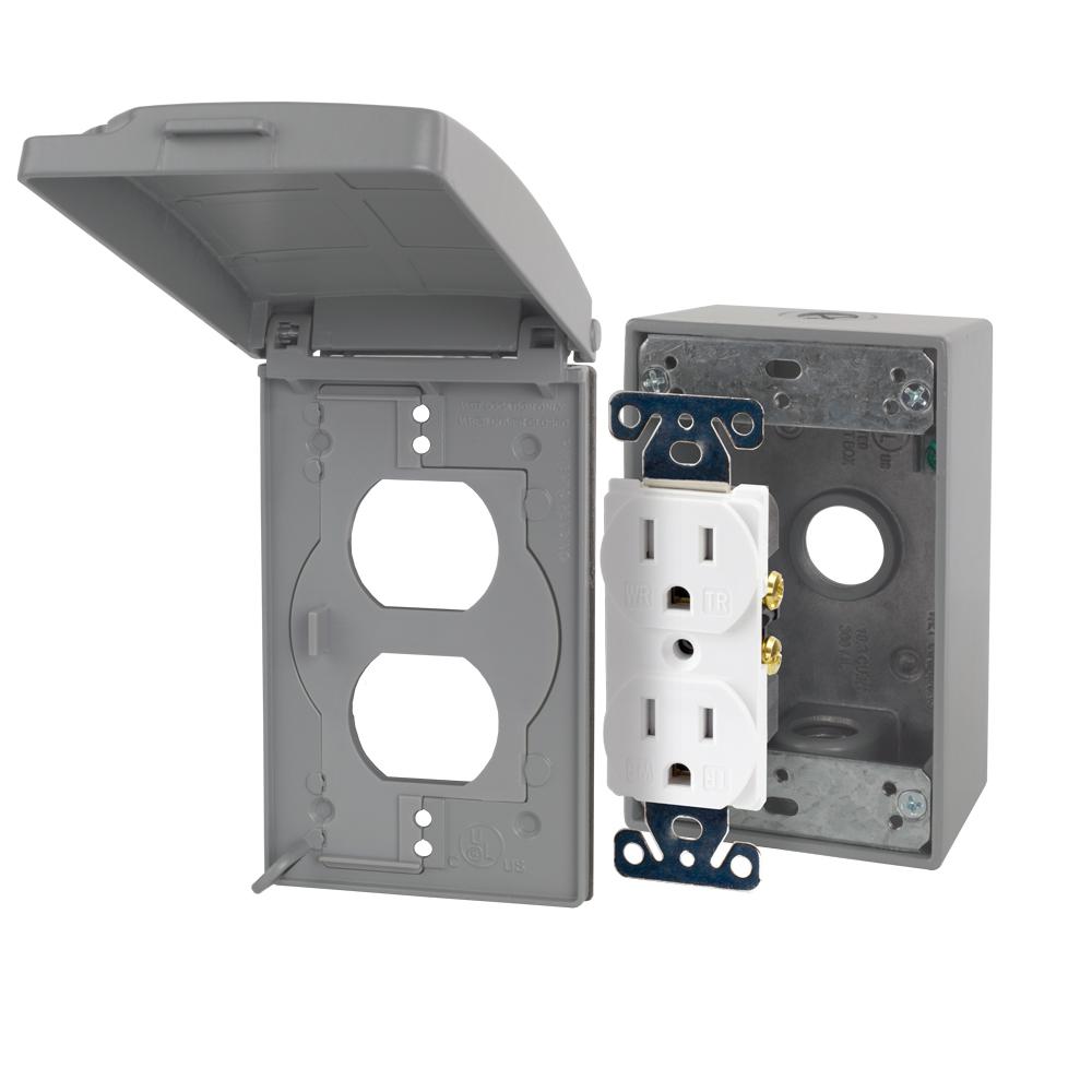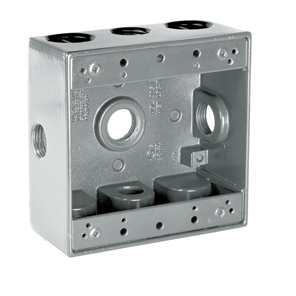 Taymac is part of the commercial construction business of hubbell incorporated. 1 gang 3 holes weatherproof box gray model wsb350g 3 17 3 17. Also find indoor and outdoor electrical covers for these units. Weatherproof two gang box extension ring a seamless two gang box extension ring 16 3 cubic inch capacity length 4 9 16 x width 4 9 16 x depth 1 3 8 gasket mounting screws supplied seamless die cast aluminum specifications for this item.