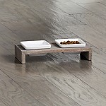 Opens in a new tab. Assembled upon arrival via white glove service. Clean lines and sleek metal meet the natural warmth of real marble for an eclectic modern mix. Grey and white marble team up as a simply beautiful asymmetrically toned oval to serve cheese desserts and more.